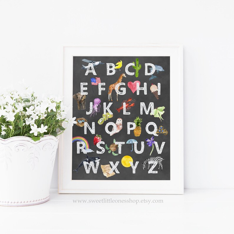 images of ABCs Alphabet Decor Alphabet Art Wall Poster ABC Print Watercolor Alphabet Letters School Printable Printable Classroom Chalkboard Nursery